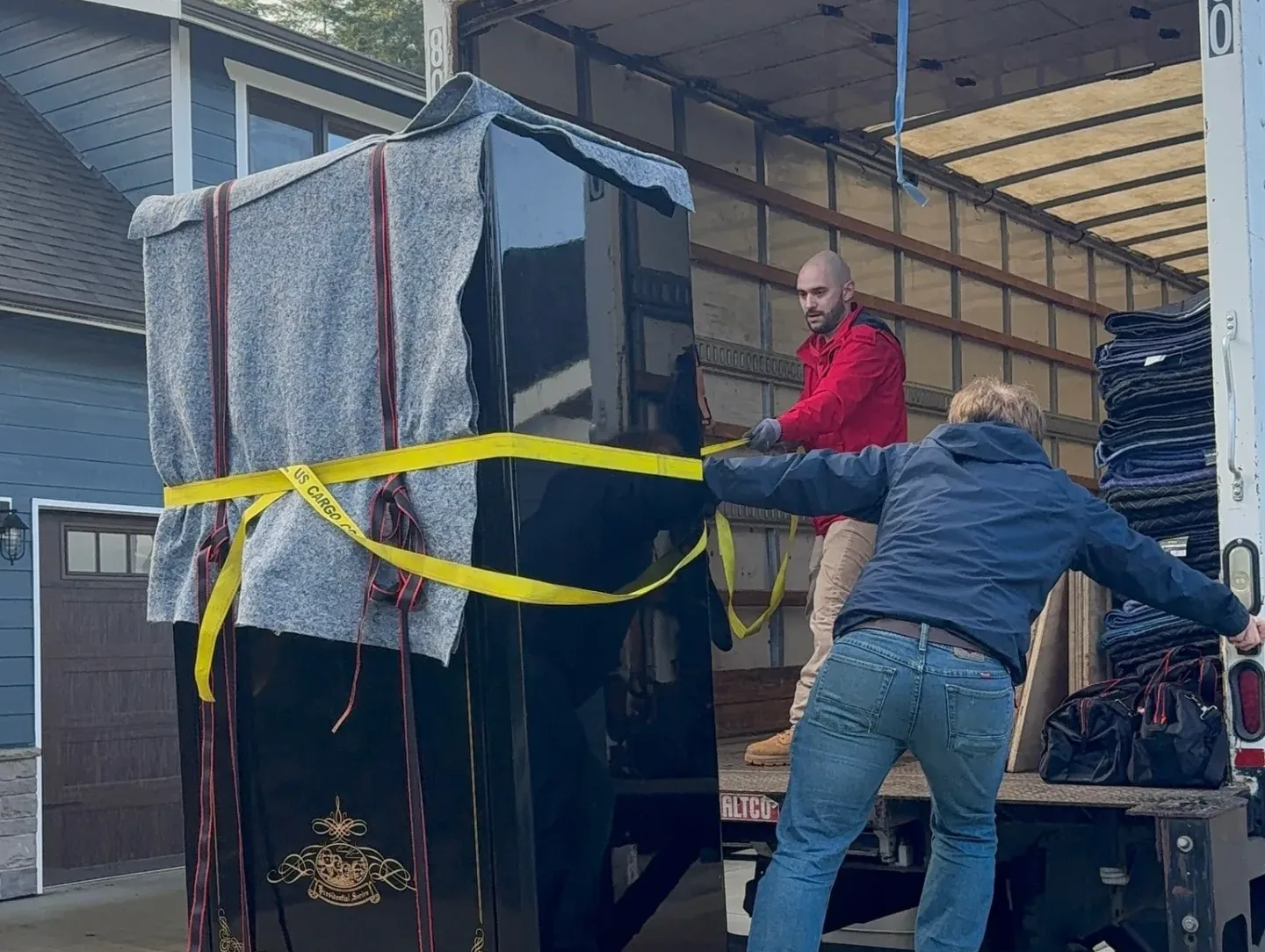 - Equipment: Special dollies and ramps are used to transport the piano safely.